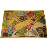Beaded Throw Yellow Wall Hanging Hand Embroidered Tapestry 60x40