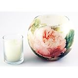 Floral Pink Peony Glass Votive Candle Bowl, includes votive holder and candle