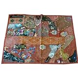 Gift for Mom- Beaded Tapestries Rust Red India Sari Patchwork Wall Hanging 60" X 40"