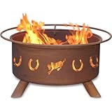 The Horseshoes Fire Pit is designed for the horse lover in all of us, the perfect gift for all equestrians. The fire pit is decorated with horseshoes and an image of a strapping stallion in the center! This stylish Fire Pit is perfect for keeping warm outside the stables or at home after a ride. The Horse Shoes Fire Pit is manufactured by Patina Products and will enhance the style of your outdoor living area, and is perfect for grilling and staying warm, year around! Enliven your next outdoor gathering with the flicker and glow of a backyard fire pit. The hand-crafted Patina Products Fire Pit will warm you up when the sun goes down. With its convenient, portable design this fire pit is truly versatile. The included barbeque grill insert opens up a world of grilling and entertaining possibilities. Plus, you'll receive the black vinyl fire pit cover at no charge, so you'll be sure your fire pit is safely stored when not in use. Read more