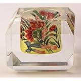 Crystal Tea Light Candle Holder, Hand Painted, Chinese Reverse Painting, Silk Lined Box, Patriotic Red Floral, Collectible (Misc.)