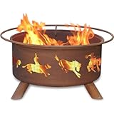 If you find yourself home on the range, the Western Fire Pit will be a great addition to your home. Whether you are a city slicker or a rancher at heart, this stylish fire pit is perfect compliment for an evening with family. The Western Fire Pit is equipped with a barbeque grill, essential for grilling up with friends, so be ready for your next gathering. Enliven your next outdoor gathering with the flicker and glow of a backyard fire pit. The hand-crafted Patina Products Fire Pit will warm you up when the sun goes down. With its convenient, portable design this fire pit is truly versatile. The included barbeque grill insert opens up a world of grilling and entertaining possibilities. Plus, you'll receive the black vinyl fire pit cover at no charge, so you'll be sure your fire pit is safely stored when not in use. Read more